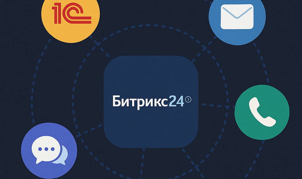 Свяжем Битрикс24 с 1С, почтой, телефонией и сайтом, чтобы данные попадали в CRM